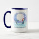Roligtens nautiska tema Juldagen mugg har en vattenfärgad val med en julhatt som simmar i havet under ett magiskt måne och stjärnor med en sträng ljus som dekorerar svan. Hälsningen "Seas & Hälsning" och "Wishing you a val of a bra jul" kan vara personlig. Art av KL Lagrar