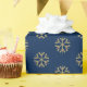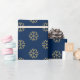 Den eleganterna julklappen i guld är Papper. Faux guld snöflingor mönster på marin blå botten av färg.