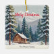Lägg till land stil i Julgran med detta vackra prydnadsföremål. Konstruktionen är på en vinterscen i snö med berg och gräs träd, med en mysigt trästuga som är fastgjord på högsidan. Med "God jul in script typography" i hälsning kan dekorationen vara personlig med ditt namn eller med annan text nedanför bild. Den omvända sidan kan också vara personlig med din egen text.