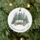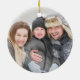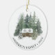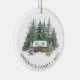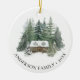 Lägg till ditt familjefoto och namn till den här söta vintersemestern med julprydnad, med en vattenfärgsscen med en mysigt hytt i snöskogen på framsidan och en fotomall på baksidan. Kontakta mig genom Zazzle- Chattan om du behöver formblåsor eller andra färgvägar.