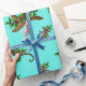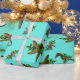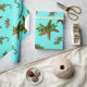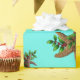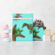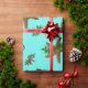 God julomslutning papper med stjärnfisk och havshästar. Grönt holly med röda bär dekorerar bruna havsstjärnor och små havshästar. Bakgrunden till färg är tropiska turkos, eller välj ett annat färg.
