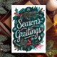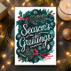 Skicka varmt önskemål med detta vackert designade årstidsbevis för Hälsning som innehåller en fyllig vattenfärgssammansättning av holly, gräs grenar och röda bär. Bakgrunden till grönten av rik och det känsliga snöflingor lägger till en tidlös beröring till detta klassiska helgdag-kort, perfekt för att sprida glädje till vänner och närstående.