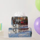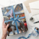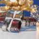 Tomten som kör ett hästsleigh för att leverera Julklapp i en liten stad