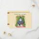 Jul spara datumkortet med en vit vattenfärgsmålning. Ett ungt barn och hennes husdjur kattunge tittar utanför deras fönster. Jultomten och hans renar flyger över natten himlar med ett stort fullt som belyser deras väg.