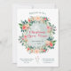 Dina gäster kommer att älska denna vackra inbjudan i en säsongsbetonad rosa, persika, orange och grön blomster vattenfärg spegelram. "Jul öppen hus" skrivs i modern röd typografi inom ramen. En enkel kvist med bär separerar sektioner med festdetaljer längst ner på inbjudan, samt pryder baksidan av inbjudan. Lätt att anpassa!