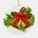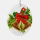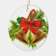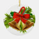 Julprydnadsföremål som visas i rund form och är gjort av porslin med en helgdag klockor tryckt utformning. Anpassa det här objektet eller köp som det är.