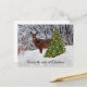 Det här är perfektens vinter-vykort som ska skickas över mil vid jul. Postkortets framsida har en snö-scen med en vit hjort och en Julgran. Det finns en Julhälsningar på vykortets framsida och baksida.
