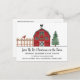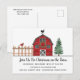 Jul på bondgården Rustik julfestinbjudan Postkort - med en söt röd rustik lada som är dekoration för julen. Postkortet är en del av en samling.