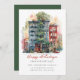 Den här festliga julmeddelanden om flytt innehåller frasen "God Jul från vårt nya ställe" med en vacker akvarell av en stads lägenhet med ett stort julgran. Meddelandet är perfekt för att skicka till vänner och familj under högtiden för att låta dem veta om din nya adress. Framsidan av meddelandet visar frasen och akvarellscenen från den snöiga citygatan och innehåller din nya adress och kontaktinformation. Den övergripande designen är festlig och charmerande, och meddelandet kommer säkert att ge en glad stund i ansiktet på dina nära och kära.