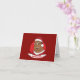 Kort för hälsning med en illustration av en leende amerikansk man i lycklig med röd och vit Jultomten och hatt; design av julgranar med anpassade textmall för ditt namn eller meddelande
