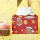 julomslag med en illustration av en leende afrikansk man i lycklig med en röd och vit Jultomten-dräkt och hatt. Juldesigner på en röd helgdagar med anpassadets textmall för ditt namn eller meddelande