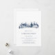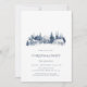 Vit inbjudan till sommarbylandskapet i Party. En inbjudan till Corporate julParty i ett klassiskt stil med monokromt vinterlandskap i marinblått och vitt färg. Snyggts- och elegantens utformning.