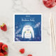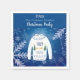 En napkin för en roligt julhelg och party, dinners. En blå bakgrund med stort vitt snöflingor, kristaller. Dekorerad med en ful vit julafton-sötare. Anpassa och lägg till din familj namn, år och typ av party. Texten: Jul Party är skriven i vitt med ett modernt handskript i stil. Vit brev.