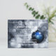 Blå julprydnad i boll på inbjudan till julfest i silver