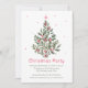 Julinbjudan Party Red and White designad med ett festligt Julgran som dekoreras med rött hjärta och en julstjärna. på vit bakgrund. Texten innehåller: Jul Party, datum, tid, plats, Adress, värd och OSA. Om du vill anpassa dig infogar du bara texten i vår enkla mall och ersätter exemplet. Se till att du kan se de matchande jultillbehören i Party.