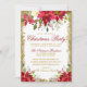 Jul Party Red Poinsettia Blommigt Guld Glitter Inbjudningar