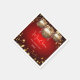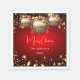 En röd bakgrund, vit text. Dekorerad med 3 faux guld-baubles och guld-stjärnor. Text: God jul. Anpassa och lägg till din familj namn och år.