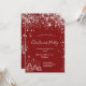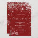 Klassisk röd bakgrund, med faux silver glitter damm och vit vinter Julgranar som dekoration. Med texten: Jul Party skriven med ett modernt och trendig stort skript i stil. Anpassa och lägg till information om party.