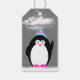 Cute penguin med snöflingor och moln på grått-bakgrund. Bakgrunden till färg kan ändras. Text kan redigeras.