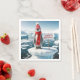 Cute penguin med rött lock och scarf på ett isberg med God jul-tecken i Antarktis.