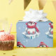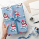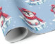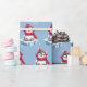 En söt vattenfärgad penguin sitta på ett isberg med röd halsduk, hatt och örlder med snöflingor.