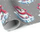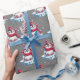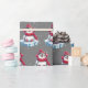 Tvättfärgspenguin sitta på ett isberg med röd halsduk, hatt och örlder med snöflingor på en vinterbakgrund av grått. Bakgrunden till färg kan ändras.