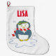 Vår berömvärda lilla julpenguin, på dessa julstrumpor i fantastisk. Namn kan vara personlig. Klicka på Anpassa om du vill ändra bakgrunden till färg.