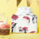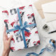 Mor och baby penguin klädd i Santa Hats och röda sjalar.