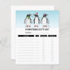 Hjälpsam checklista för planering av julklappar för vänner och närstående. Utformningen har Desteis ursprungliga illustration av tre festliga Gentooppenguiner som håller färgstark ljus med sina näbbar. En penguin bär en grönt scarf, en annan bär lila örarskydd och den tredje penguin i mitten bär en röd och vit julhatt. Bakgrunden är en ljusblå övertoning. Det översta står: "julklappslista" och sedan finns det utrymme för mottagarens namn. Det finns också avsnitt för presentidéer, prisa, oavsett om presenten har köpts eller inte och om presenten har slagits in.