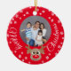 Jul Photo Red Cute Reindeer White Script Julgransprydnad Keramik