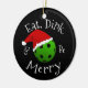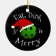 Julpickleball som säger "Eat Dink" och "Be Merry grönt pickle boll i Santa hat" är en underbar gåva till picklebollspelare som har en känsla av humor.