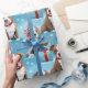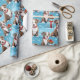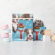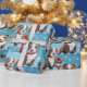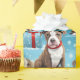 Piebald Pitbull-valpar med rött rosett band, med ljusblå bakgrund, med presenter och snöflingor.. underbarare papper för att figursätta dina presenter i år, måste ha för hypofysfamiljer eller andra hundälskare - - A © WhimsicalArtwork™ original - - A © WhimsicalArtwork™ original -