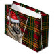 Hundälskarna kommer att varna för att ta emot eller ge den här söta julhelgens presentväska, med en snyggt av den belgiska Tervuren hund på en röd, grönt och guld-helgdag med en mönstrad bakgrund.