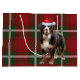 Hundälskarna blir varma för att ta emot eller ge den här söta julhelgens presentväska, med en snyggt Bernese Mountain-hund på en röd och grönt helgdag med mönsterad bakgrund.