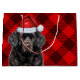 Hundälskarna kommer att bli varma för att ta emot eller ge den här söta julhelgens presentväska, med en snyggt Newfoundland hund på en röd buffel som är avsedd för en helgdag mönstrad bakgrund.