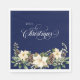En matchande blå napkin med jul i ett designskript och vattenfärg Poinsettia, bär och gräs som inslag. Elegant säsong napkin för din julfest party eller Helgdag. Kommer i vit och blå bakgrund. Här på en blå bakgrund. Lycklig helgdag firande. Se de andra matchande produkterna i den här samlingen för ett sammanhängande tema.