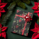 Jul Poinsettia Flower och Mistletoe Red Berries Jul Wrapping Papper.