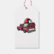 Jul Poinsettia Gnome på Röda Pickupa Lastbil Presentetikett