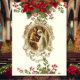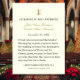 Den har en vacker traditionell katolsk bild av Espousal för den välsignade Jungfru Mary och St. Joseph med röda poinsettias och bär. En bön är på baksidan för bruden och brudgummen. Alla texter och typsnitt kan ändras.