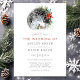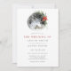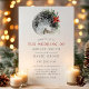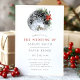 Jul Poinsettia Blommigt bröllopsinbjudan till i Måne. Vackra botaniska bröllopsinbjudningar i elegant med vinter-blommor med röd grönt blommigt som omger en fullt måne. Den här anpassningsbarna är en modern bröllop-design som lätt kan vara personlig med dina egna bröllop-detaljer.