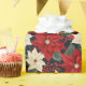Röda och vita poinsetter med löv och bär. Offentlig domänavbildning.