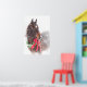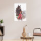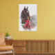Jul Pony - ett mörk-fack med en röd båge och ett jingle klockor, med snö som faller. En värdefull jultidsimage som passar för juldekoration i ett horsey eller ett stilrum.