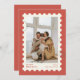 Ett julkort med ett foto har en postage ram och modern typografi.