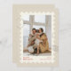 Ett julkort med ett foto har en postage ram och modern typografi.