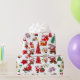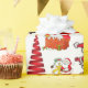 Färgstarka, söta julvarelser med Julgranar och vit och röd poinsettia