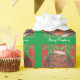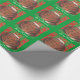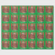 En tortoiseshell-katt i lycklig (som liknar en julpudding!) sitter på en grönt kudde mot en röd och grönt, med löv som mönster, och "God jul i vitt på gröntens bakgrund. Klar julomslutning papper med ett anpassade som du kan anpassa med din egen text, ditt eget meddelande eller bilder. Bilden skapades från en färgad-blyertspenna teckning.