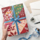 Patchwork design of helgdag print. Dansa polkagrisar, hängande ornament och falla samman snöflingor kom i en roligt, en glad fuktig figur mönster.