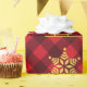 En röd och svart buffel la mönster med olika julsilhuetter i guld. Festiv renar, Julgran, Julafton stjärna, snöflinga och tomtsleigh. Idealisk för julklappar och dekor.