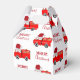 En söt illustration av en rödbrasa lastbil som bar en julhatt och dekorerade i ljus. Den beundransvärda röda eldmotorn rusar iväg för att släcka en brand. Perfekt för vem som helst och vilken ålder som helst. Ett favoritakut fordon.