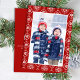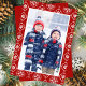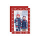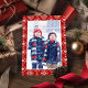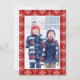 Det här god jul-fotokortet, en helgdag med julrött snöflingor i elegant med en fotomall och en penselmanschetttypografi, en enkel minimalistisk, röd och vit, klassisk, traditionell, modern vinter, söt, vit, helgdag-fotokort